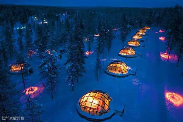 ■ 雪地透明旅馆这会是一个你愿意抛弃一切换得一夜温存的地方:位于芬兰Kakslauttanen的雪地透明旅馆,配备玻璃幕墙,每个房间都如同一颗钻石,晶莹地镶嵌在白色的大地。透过透明的幕墙,我们可以舒服地躺在床上仰望星空,彼时彼刻,时间与空间将失去全部的意义,天地间只剩了一个孤单的自己。