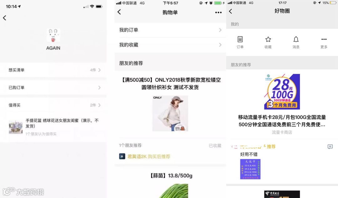 这次「微信购物单」升级为「好物圈」无疑再次给商家带来更大的流量。买家可以从微信-发现-小程序搜索中找到好物圈;商家可以结合小程序专享营销玩法,如:秒杀、砍价等活动来增加单品的下单,提升商品转化,使得其被推荐;