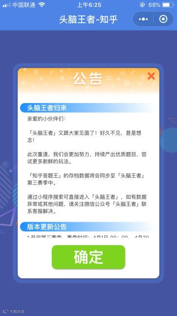 时间来到了4月,“头脑王者”小程序历经“艰苦奋斗”,终于又重新上线了!“头脑王者”公众号昨天宣告其正式回归,同时开启新赛季:现今赛季。