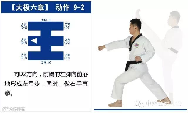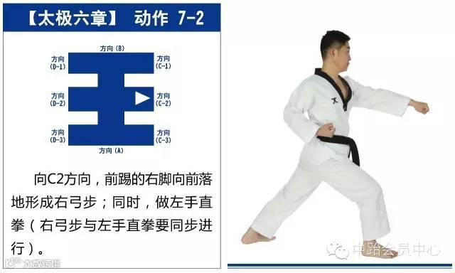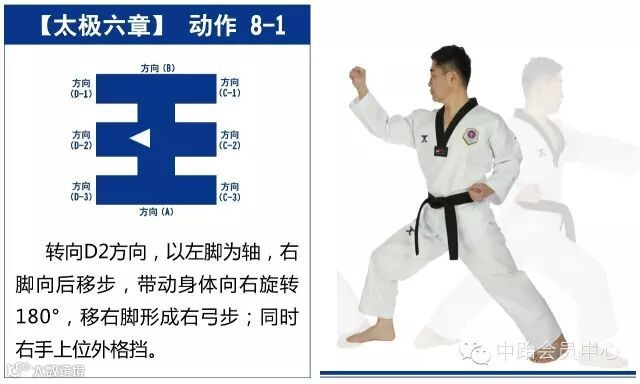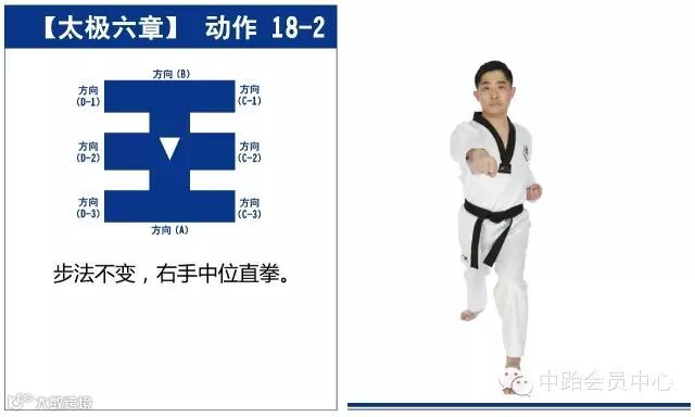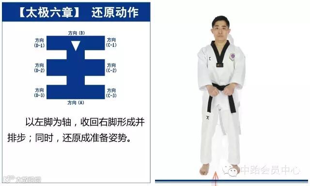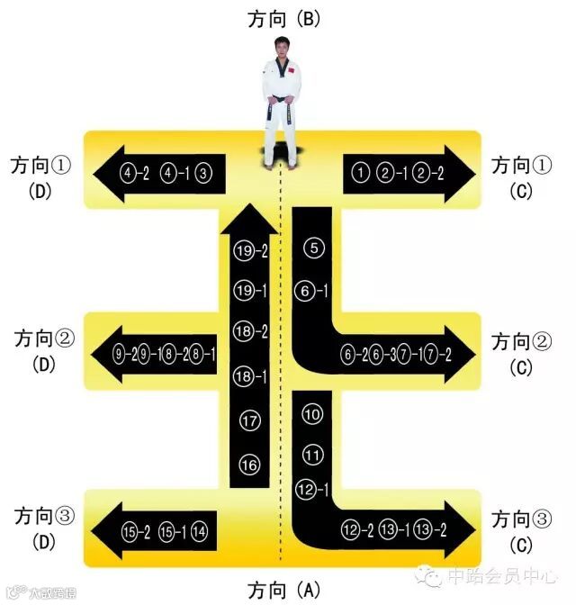 太极六章的进行线路最终形成一个“王”字,从起点开始,最终回到起点,共19个动作。