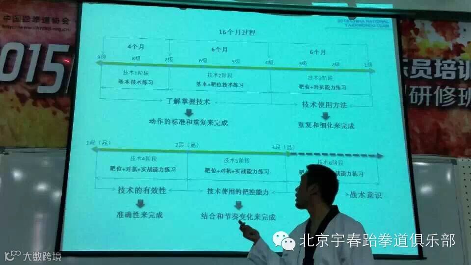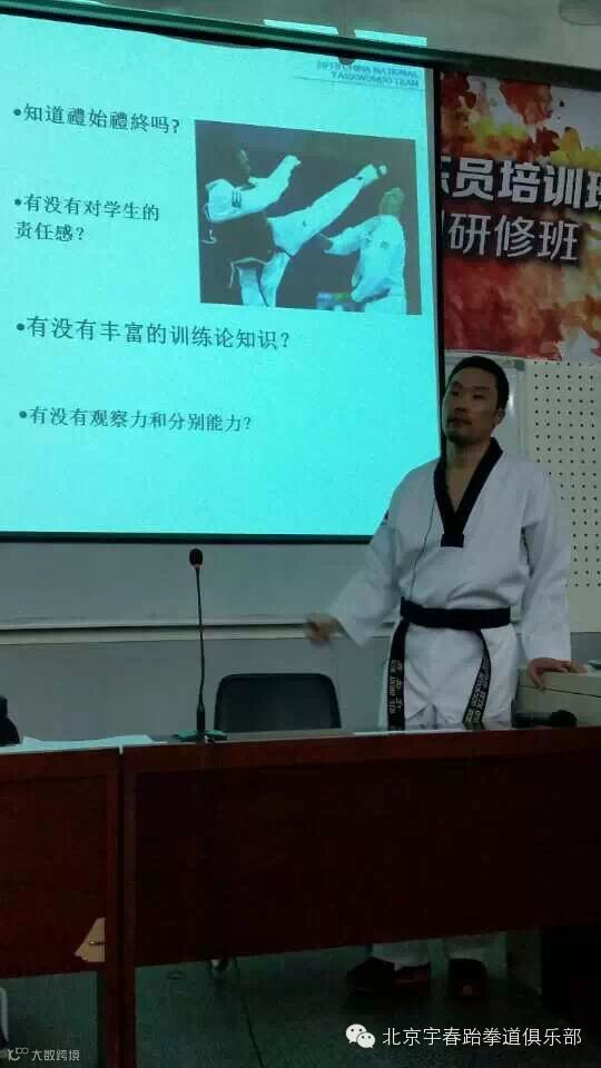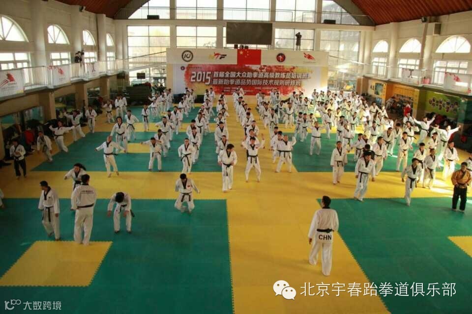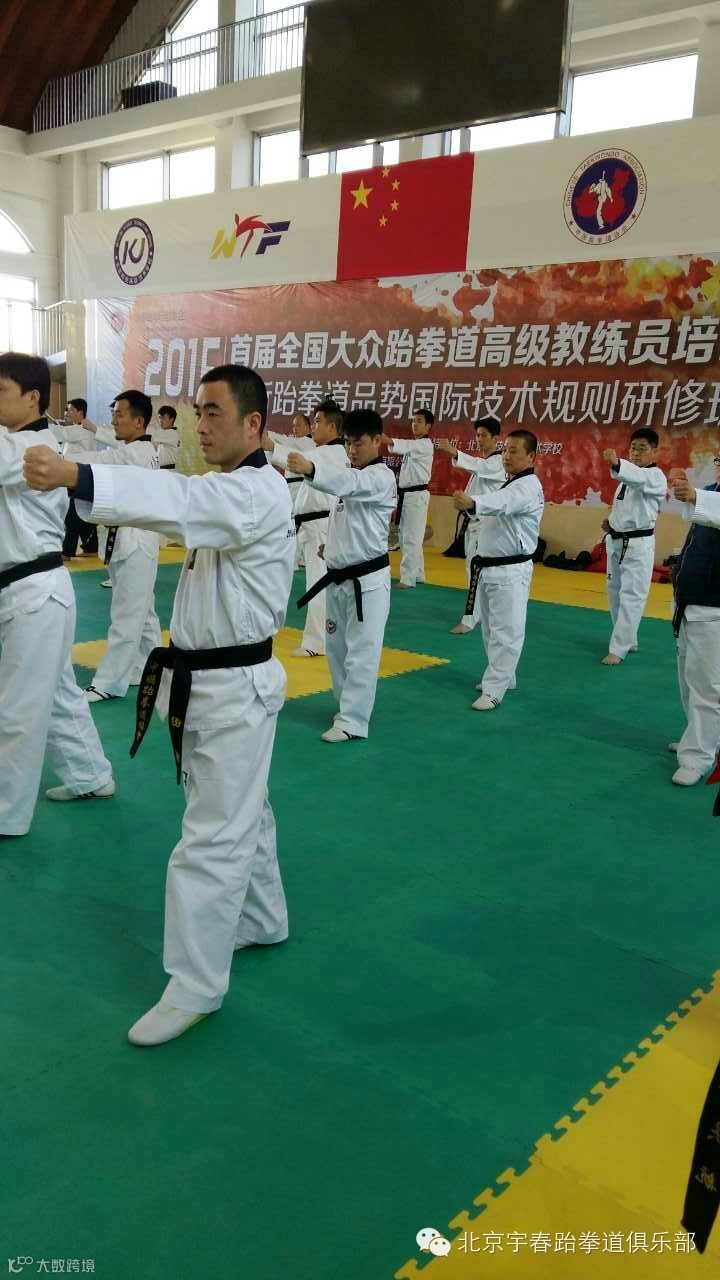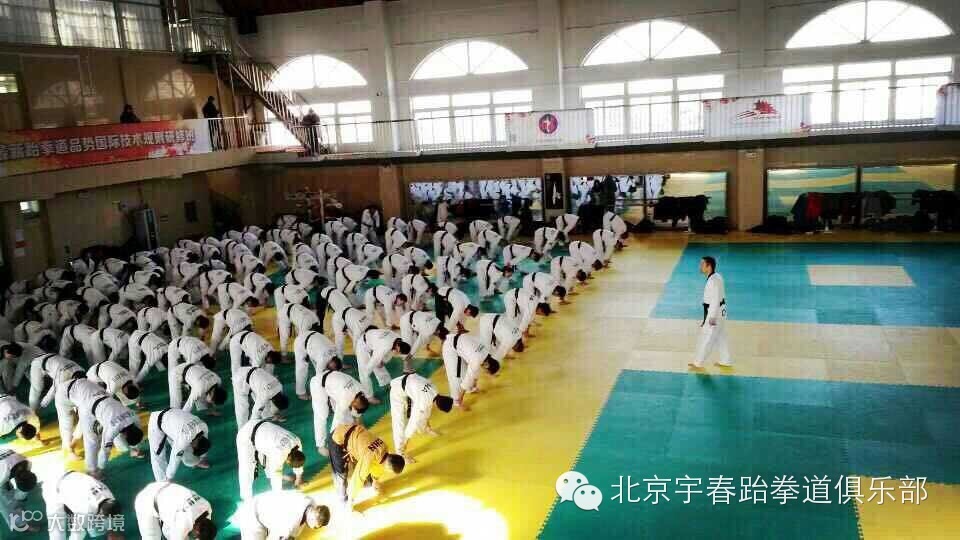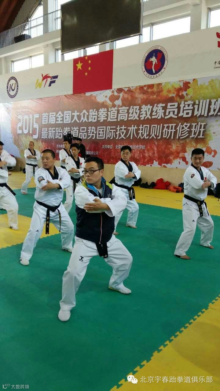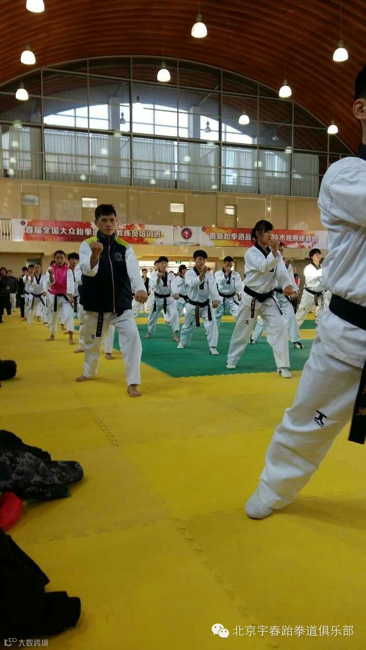 北京宇春跆拳道俱乐部首届全国大众跆拳道高级教练员培训班于1月26日在门头沟区开课,此次培训班是由国家体育总局拳击跆拳道运动管理中心主办,邀请了国内著名教练员,国际级裁判员,以及现役国家队教练组为大家进行竞技,品势,特技的训练方式,最新规则等知识的培训,共聚集了来自全国的200名优秀的中级教练员,宇春跆拳道俱乐部教练组们全体参加了培训班,分别为黄伟,程飞翔,池光辉,王品,卞晗,史庆航,田军,徐浩,高新远,通过为期7天的学习将会使教练们掌握更多的教学技能,并且和全国的教练员们分享教学经验。