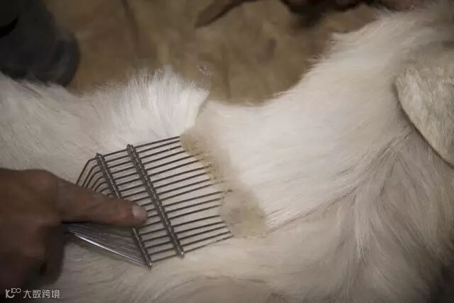 ▲梳绒,用取毛梳紧贴山羊身体轻柔地来回梳理