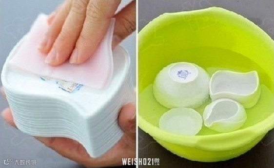 2、把浸有白醋的洗碗布盖在餐具的标签上,大约20分钟左右。