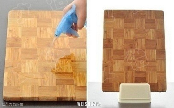 先用洗洁精和清水把案板清洗干净,然后在案板上撒一勺盐,用洗碗海绵蘸一点点水后,反复擦拭案板的表面,然后用冷水冲洗干净。再将白醋和水以1:2的比例调好后倒入喷壶中,喷在案板的表面,然后放到通风的地方,自然风干即可。