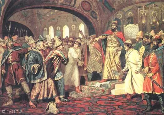 △1480年,莫斯科大公伊凡三世把蒙古索要贡赋的国书撕毁,并当庭下令将汗国特使处斩,宣告和蒙古正式脱离关系。