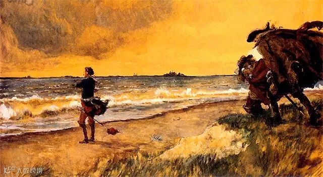 △20世纪初俄罗斯画家的作品,描绘彼得一世望着波罗的海,沉思着构建彼得堡的蓝图
