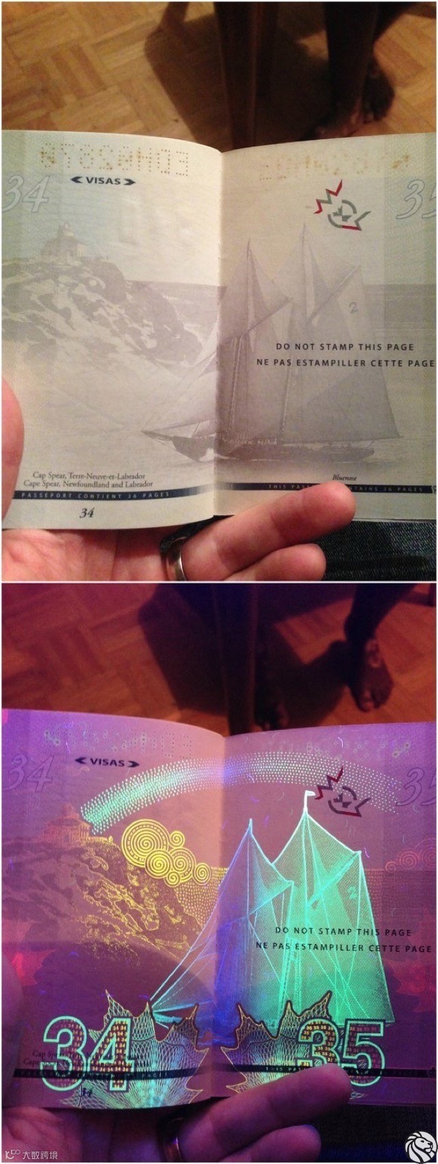 再看挪威新护照,听说在紫外线下会显示极光。
