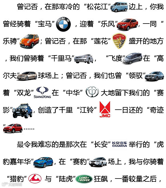 居然用车名写情书,高手在民间!地球上的绝版。