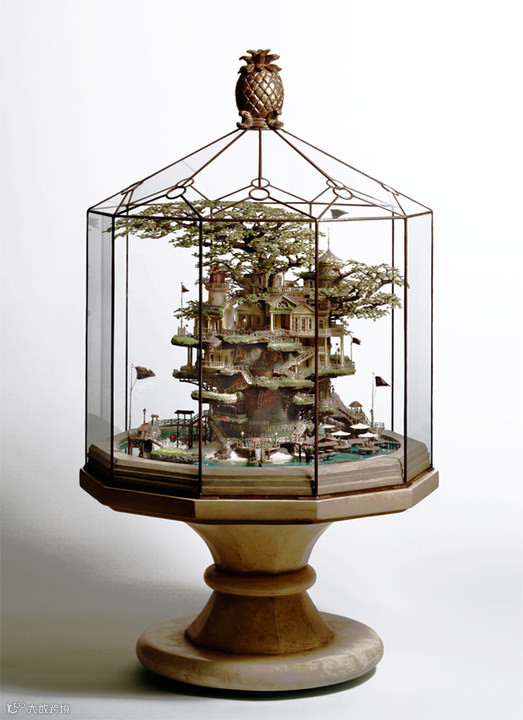 盆景设计大神-日本艺术家Takanori Aiba。日式传统盆景风格是描绘微缩的自然美景,Takanori Aiba的作品将我们的居住环境与自然元素互相结合,产生了两者和谐共存的梦幻场景。