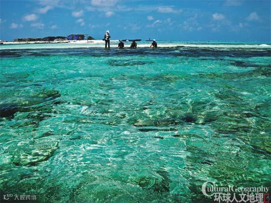 珊瑚礁群岛都是潜水者的天堂,从天空中望去,片片群岛就像抛向碧海上的一束花环,或者撒向海面上的珍珠白玉项链。透过清澈的海水,人们能看到隐伏在水下的珊瑚礁轮廓。