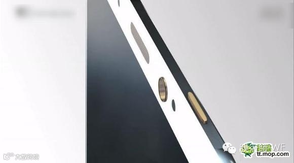 2、同时我们看到HOME键部位继承了IPhone 5s的指纹识别技术,具备指纹扫描功能,同时Nano Sim卡的位置被移到了机身左侧下方。