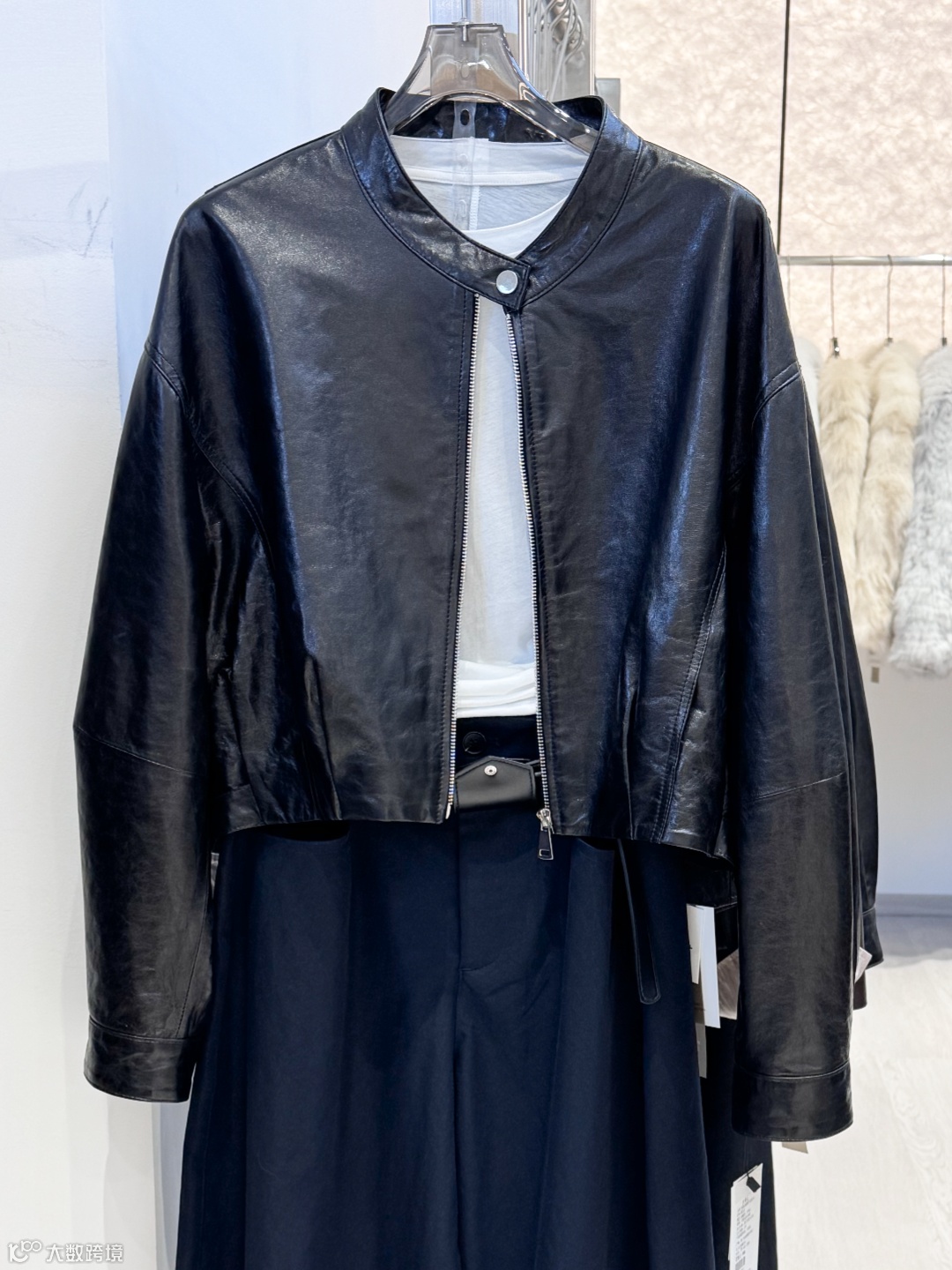这件黑色立领短款皮衣很适合打造酷帅风格~短款版型对身材比例很友好,日常搭配裤子或裙子,都能穿出率性又高级的效果。