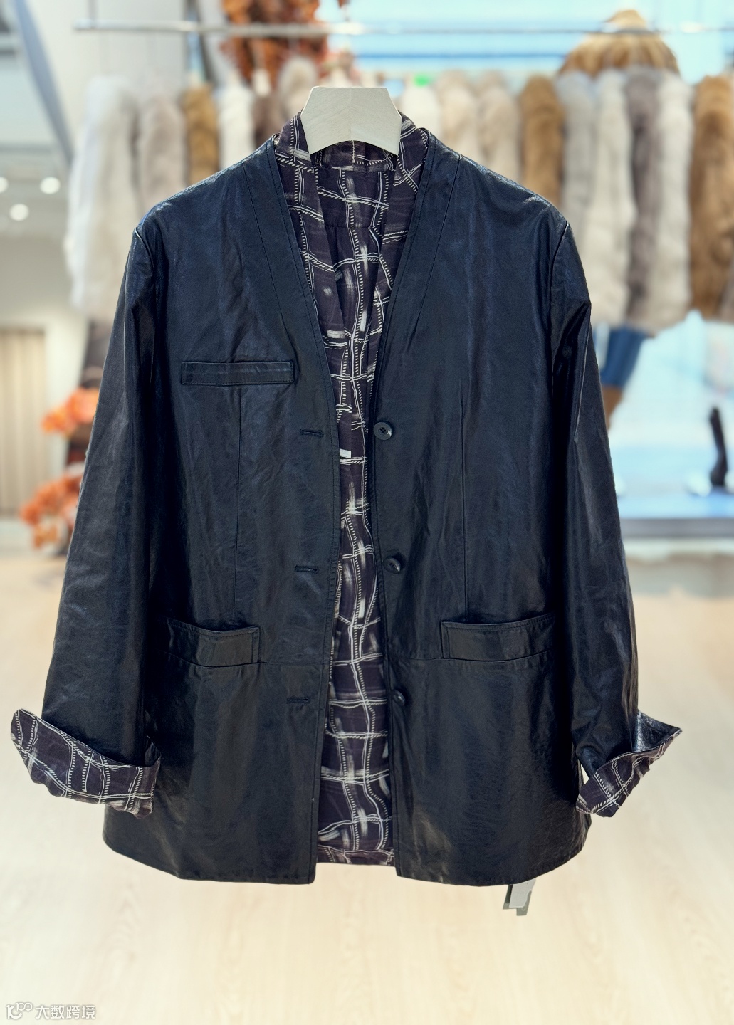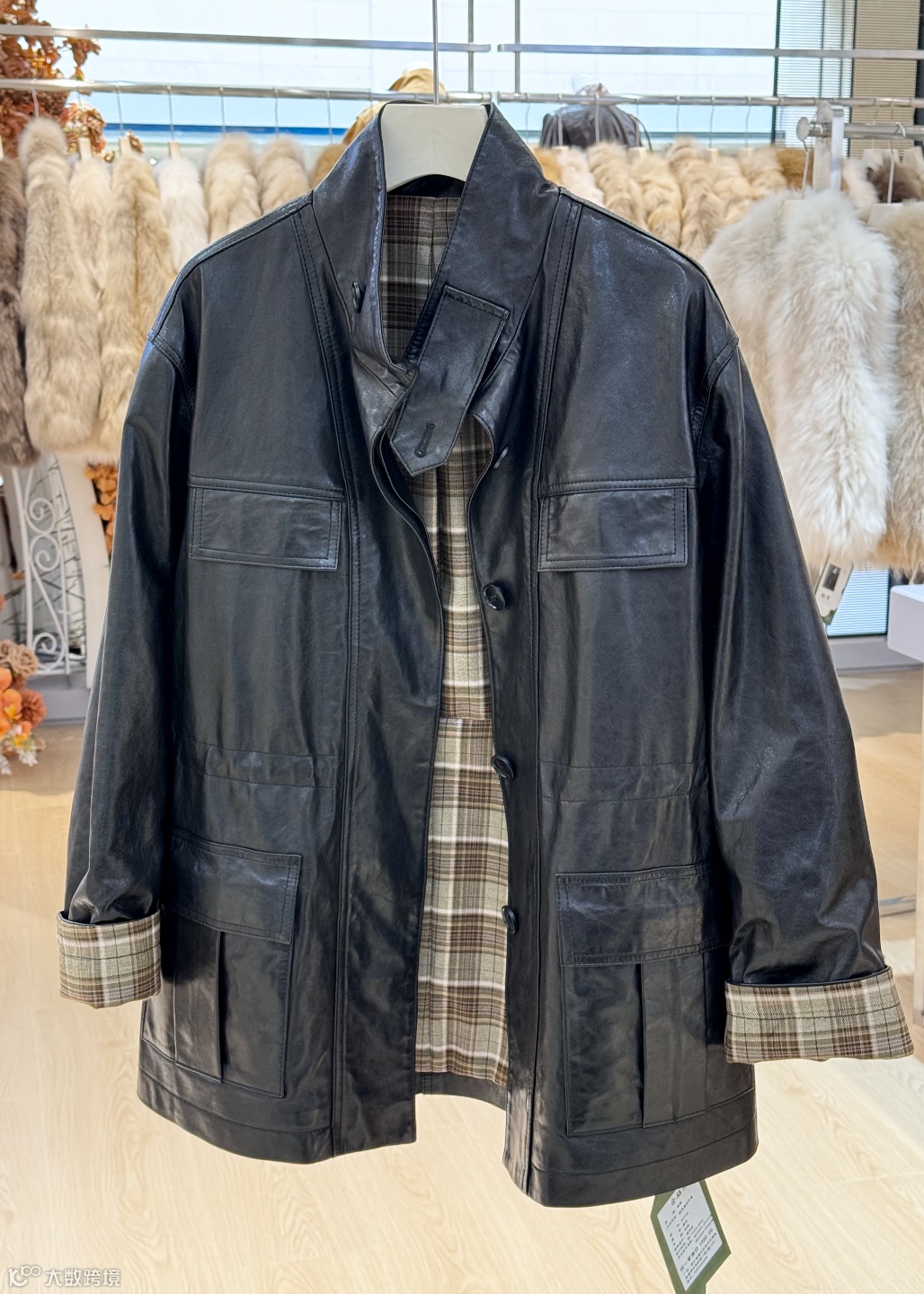 这两款黑色皮质外套:宽松版型透着随性休闲感,内里格纹衬里增添复古细节,借由皮质与格纹的碰撞,轻松打造出复古又利落的潮酷风格~