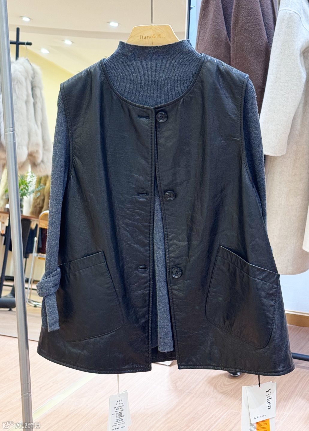 无袖皮马甲:无袖剪裁利落轻便,方便叠穿搭配~左侧黑色款是 V 领纽扣开合,简约大气;右侧棕色款可搭配荷叶领内搭,温柔又有层次~