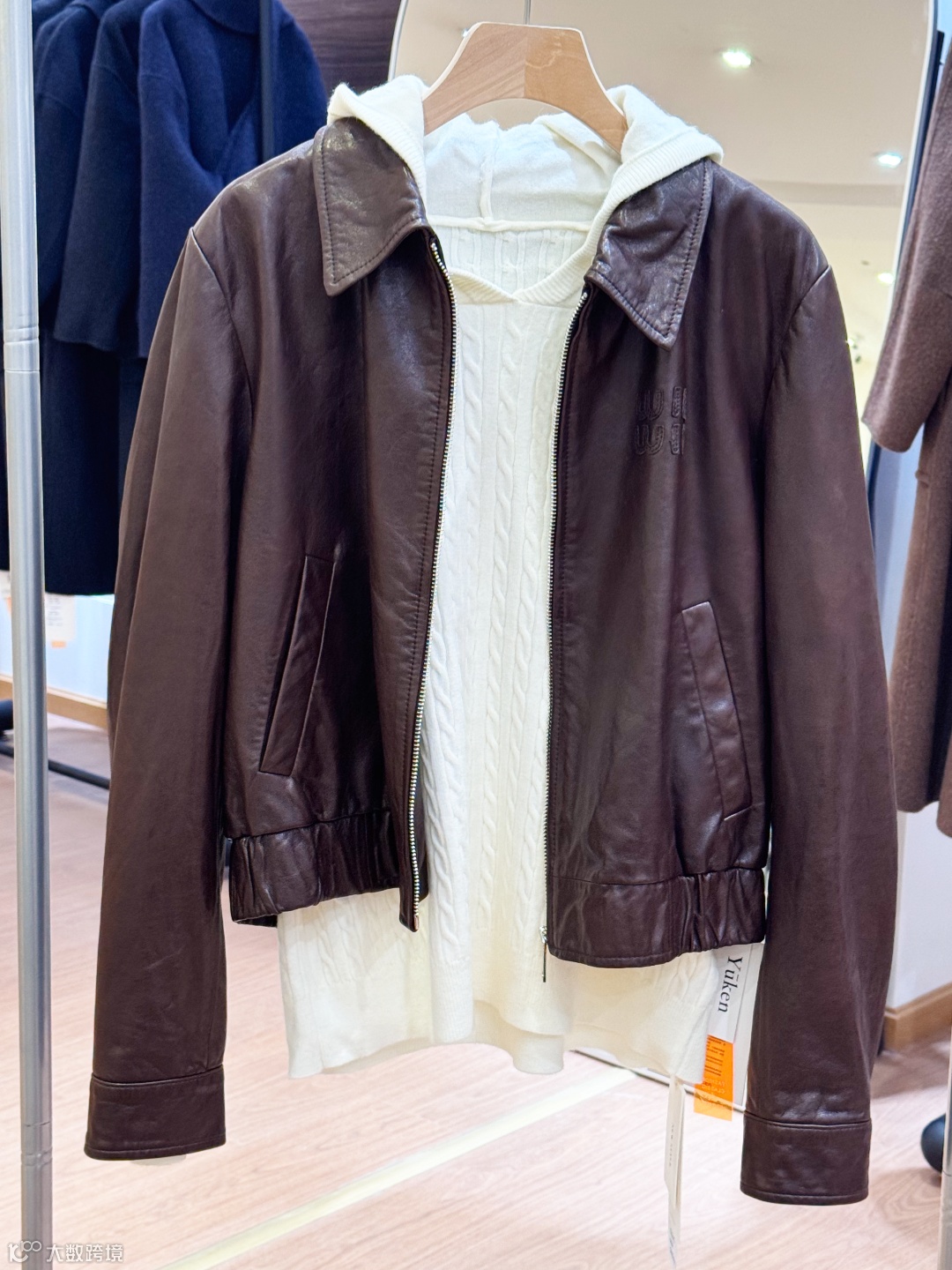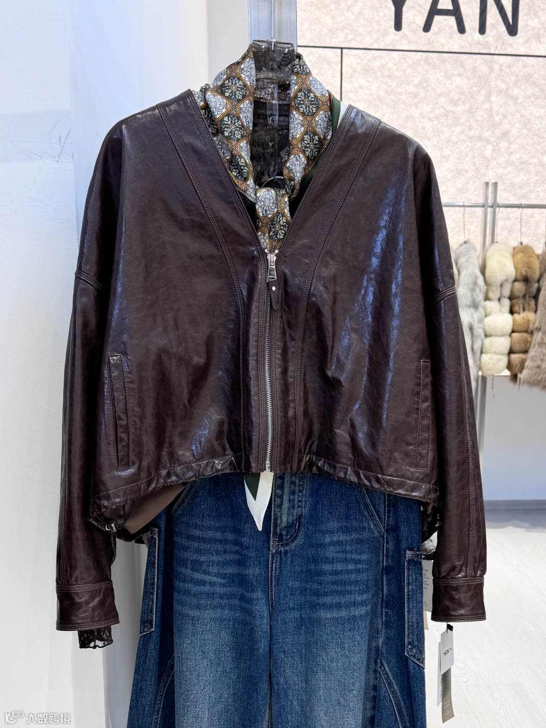 棕色 V 领拉链皮衣:宽松短款剪裁自带休闲慵懒感。瞬间营造出复古又有腔调的风格。