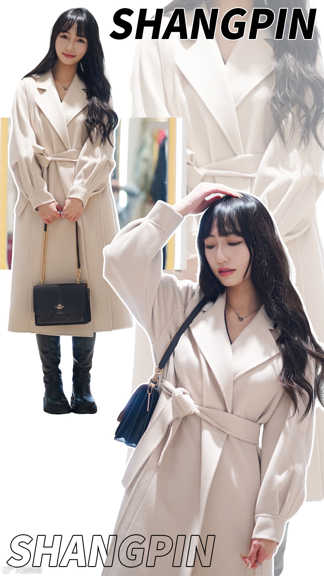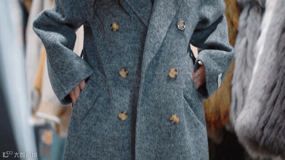 表面自带长毛质感,上身洋气又软糯。版型是最基础的大廓型,翻领利落干净,搭配深色双排扣,灰色高级感直接拉满!