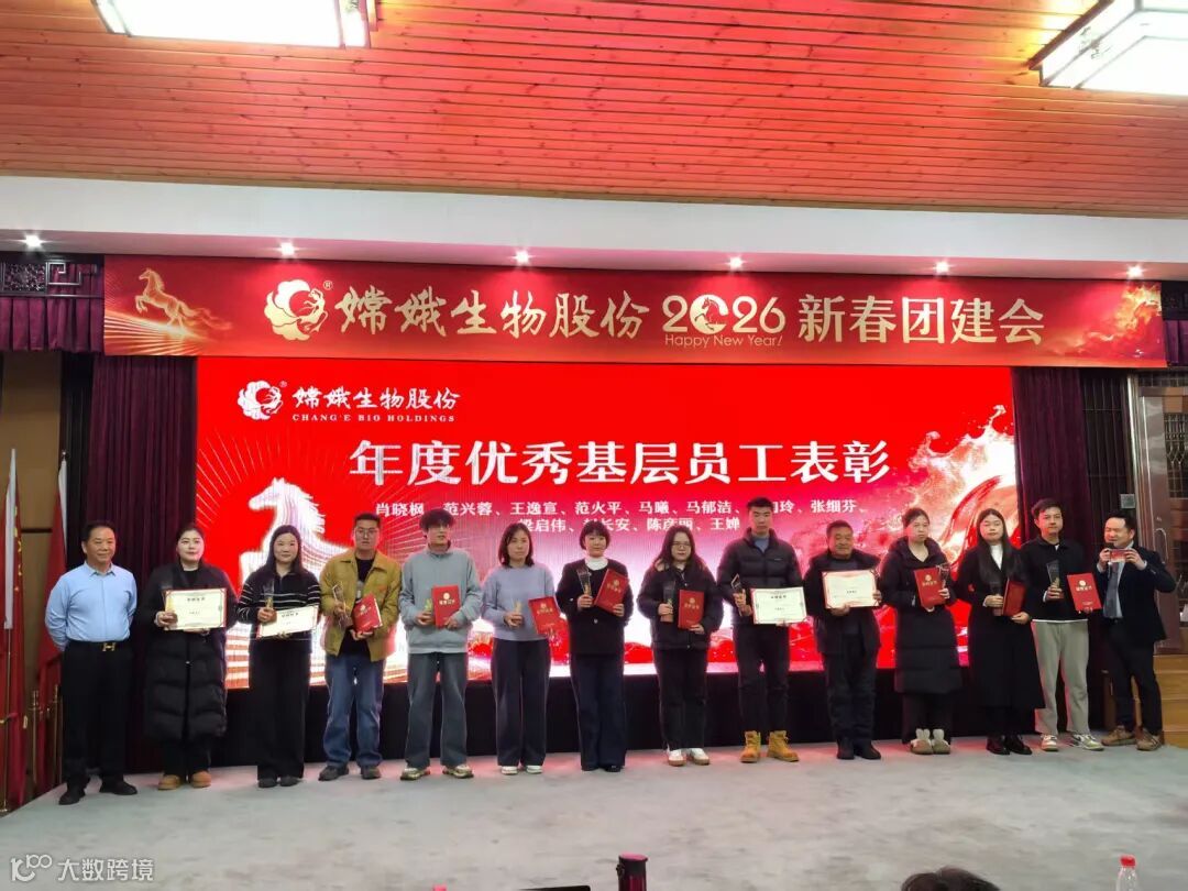 大会中对2025年度12位优秀基层员工进行了表彰,体现了嫦娥生物股份重视人才、激励一线的企业文化。