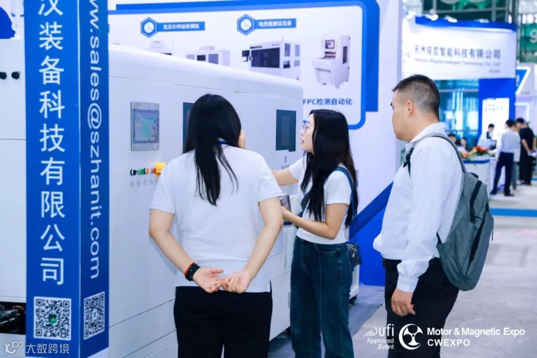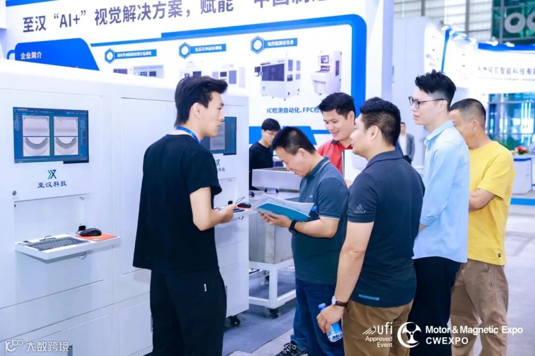 在本次展会中,至汉装备凭借其创新产品——磁材表面缺陷智能检测分选机和一键式尺寸测量设备,成为现场的焦点。