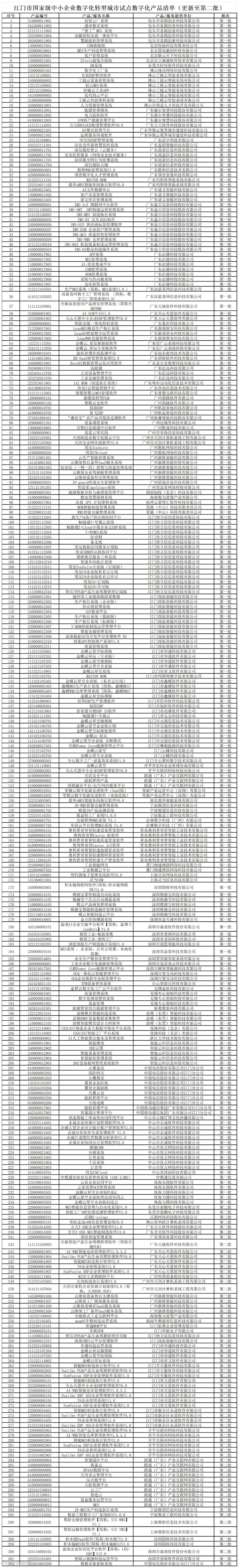 附件:江门市国家级中小企业数字化转型城市试点数字化产品清单(更新至第二批)