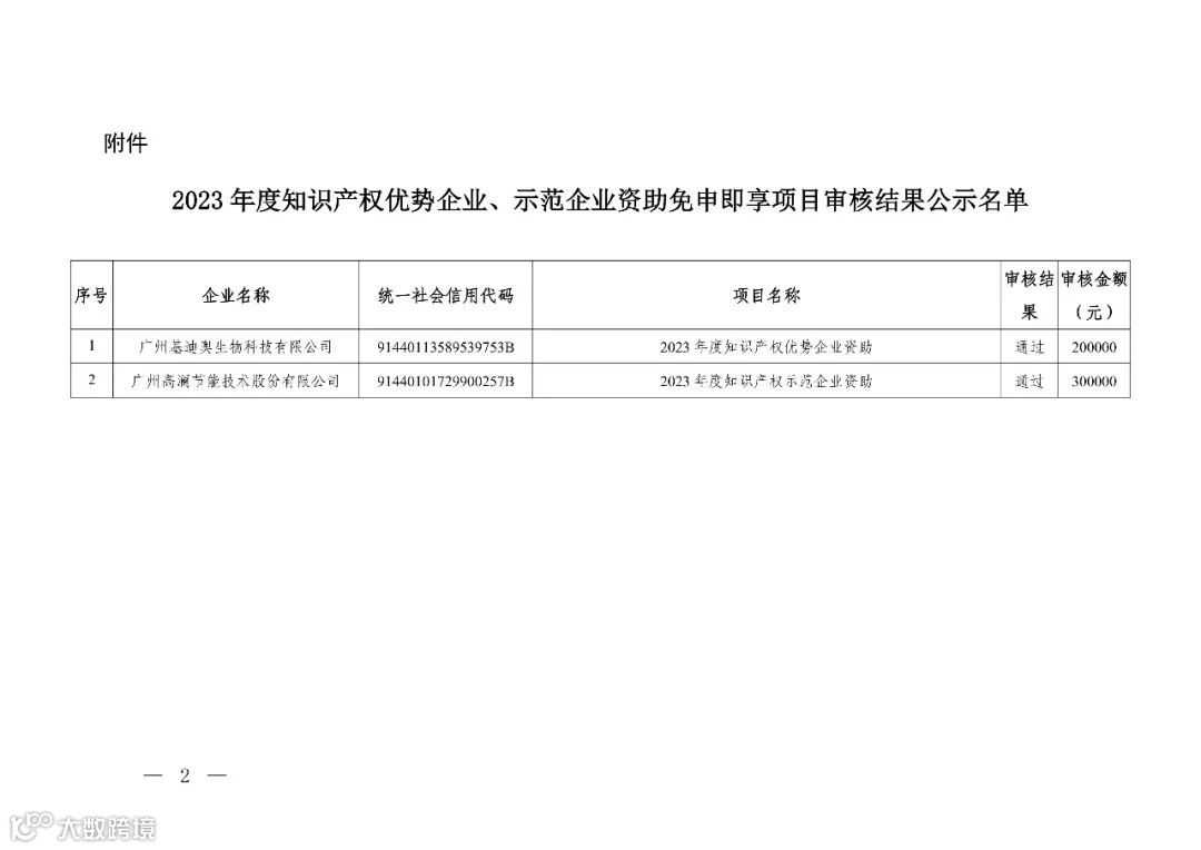 附件:2023年度知识产权优势企业、示范企业资助免申即享项目审核结果公示名单