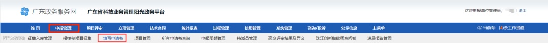 点击:申报管理→填写申请书