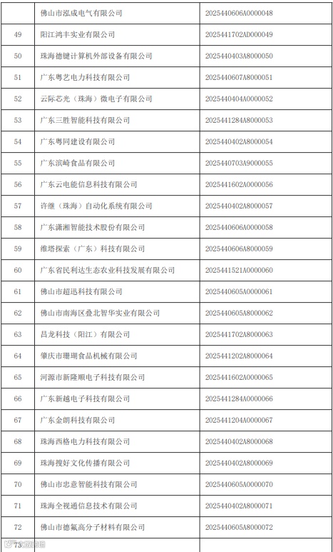根据《科技型中小企业评价办法》(国科发政〔2017〕115号)和《科技型中小企业评价服务工作指引》(国科火字〔2022〕67号)有关要求,广东省2025年第一批科技型中小企业已完成公示。公示期间,经异议核实处理,共有4家企业不符合科技型中小企业入库条件,现将通过公示的广东省2025年第一批7226家入库科技型中小企业名单(详见附件)予以公告。