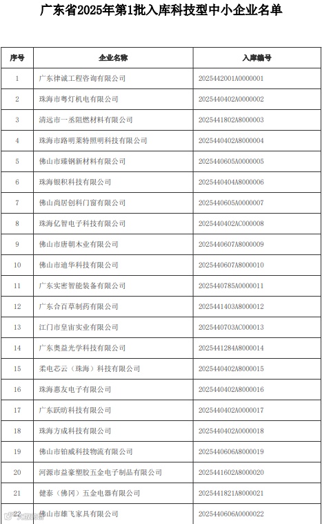 附件:广东省2025年第1批入库科技型中小企业名单
