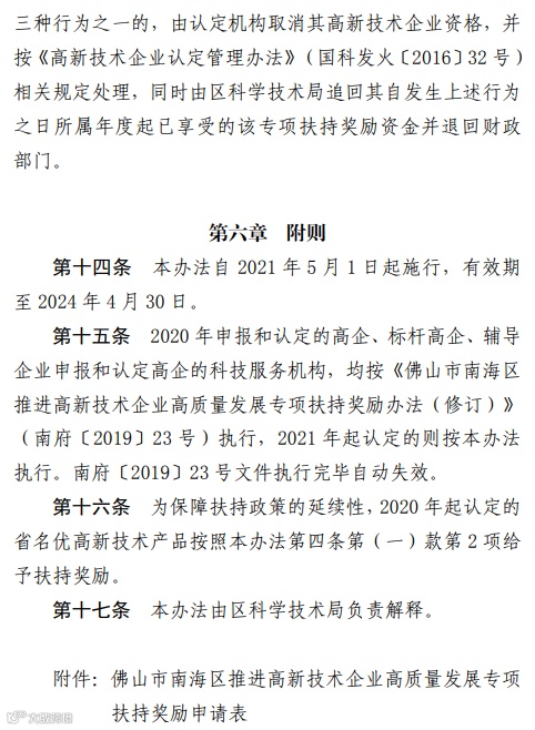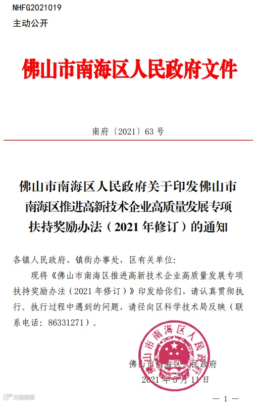 为顺利组织开展2021年度南海区推进高新技术企业高质量发展专项扶持奖励申报工作,根据《佛山市南海区推进高新技术企业高质量发展专项扶持奖励办法(2021修订)》(南府〔2021〕63号)文件精神,现将有关事项通知如下: