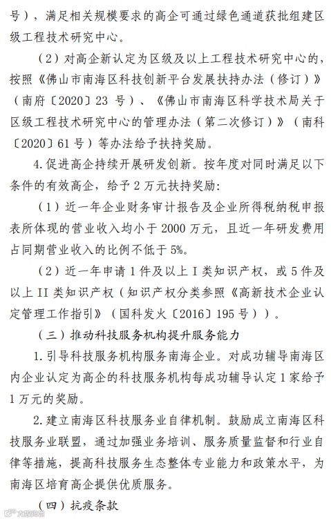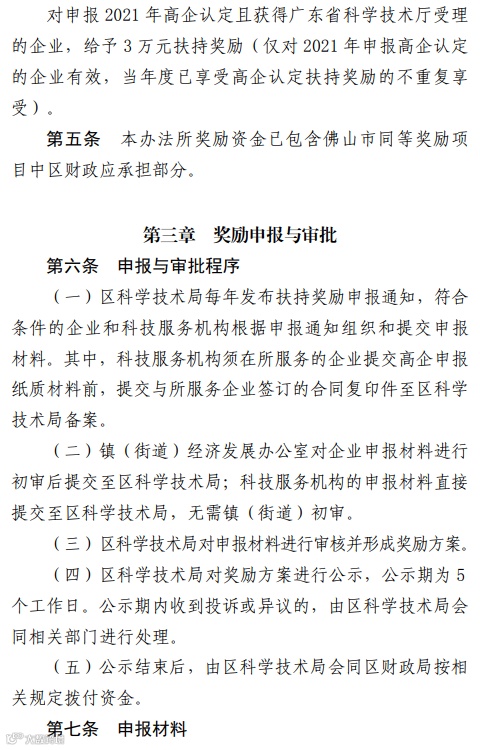 (五)申报2021年高企认定且获得广东省科学技术厅受理的南海区企业(通过高企认定的企业不重复享受该项奖励);