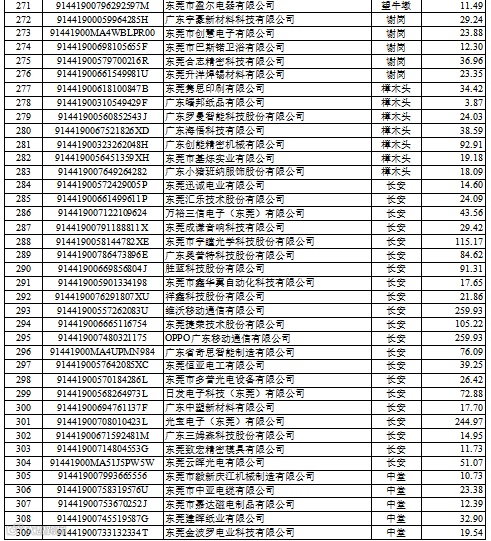 附件:东莞市重点工业企业市场开拓扶持项目拨付明细表
