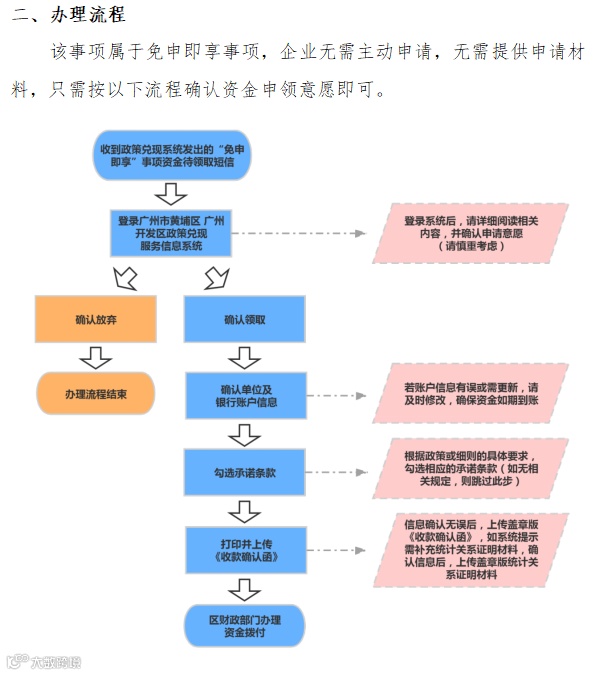 (三)该事项属于“免申即享”事项,企业无需主动申请,无需提供申请材料,只需按以下流程确认资金申领意愿即可(详见附件2)。