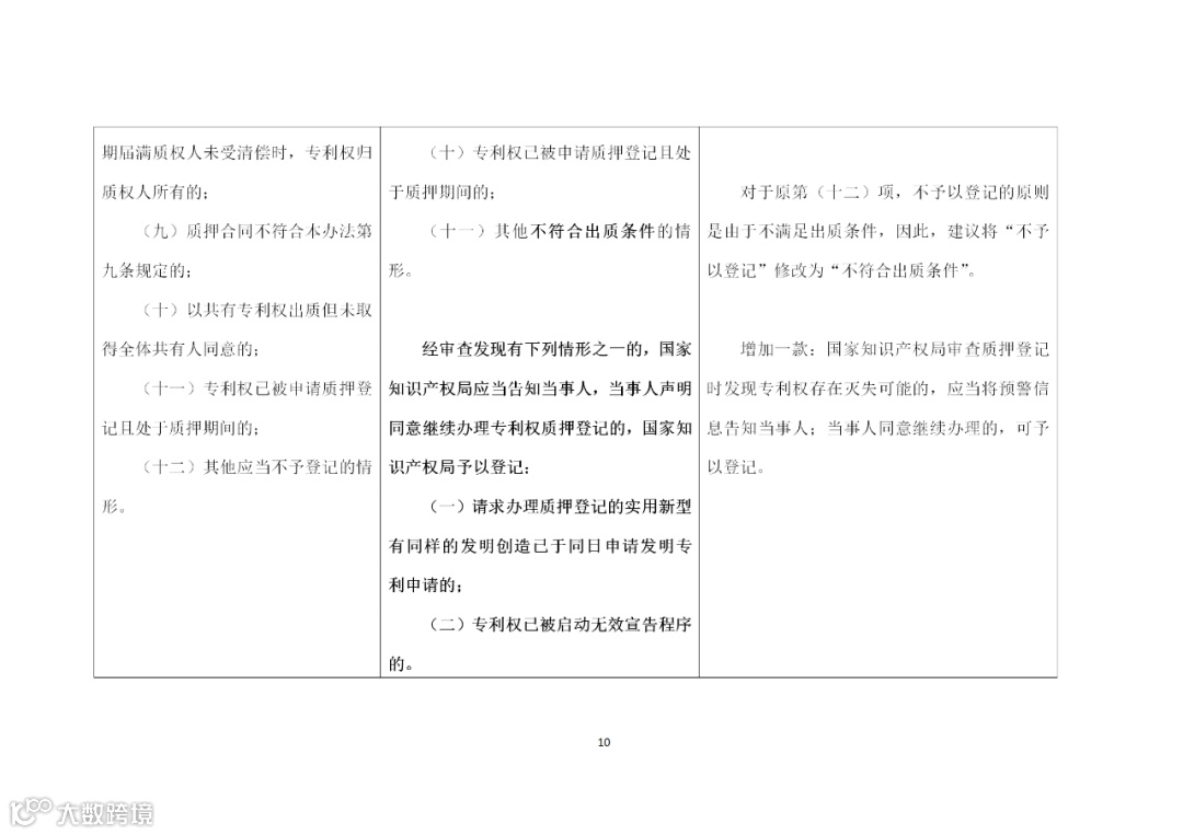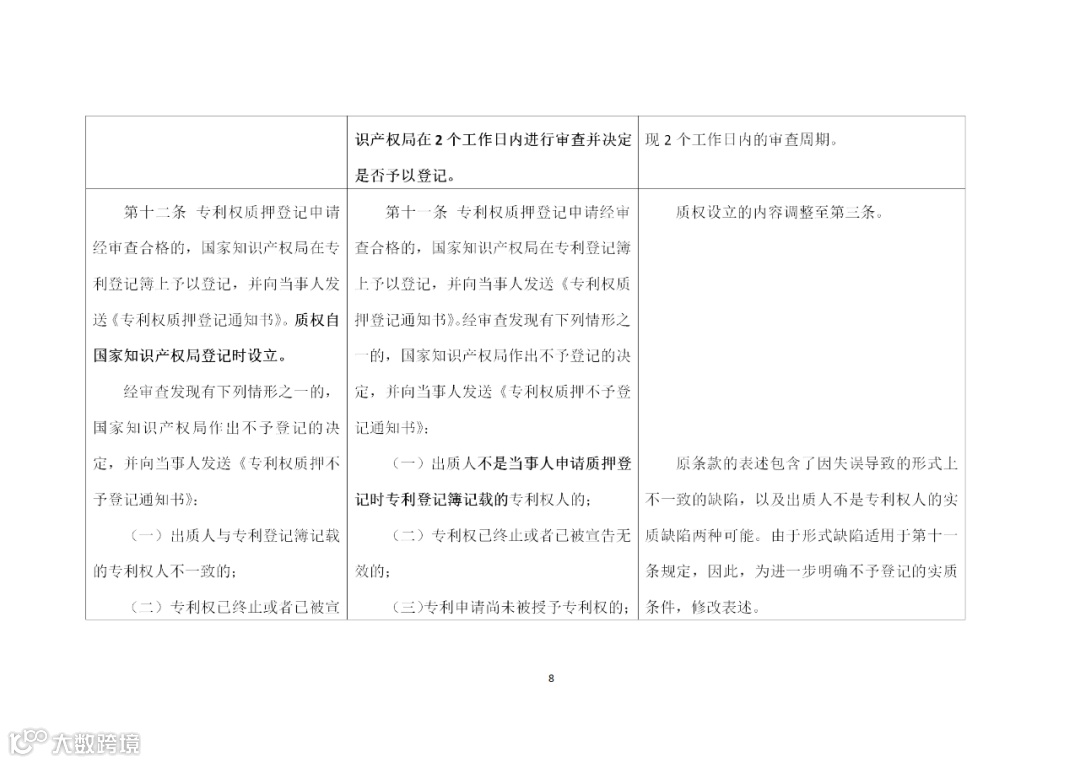 《专利权质押登记办法修改建议(征求意见稿)》相对于原《办法》,建议修改的主要内容如下: