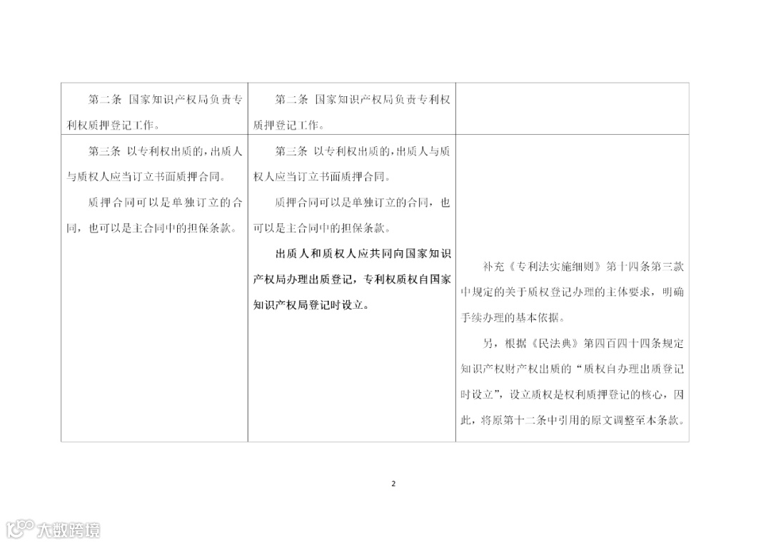 附件2《专利权质押登记办法修改建议(征求意见稿)》修改说明.docx