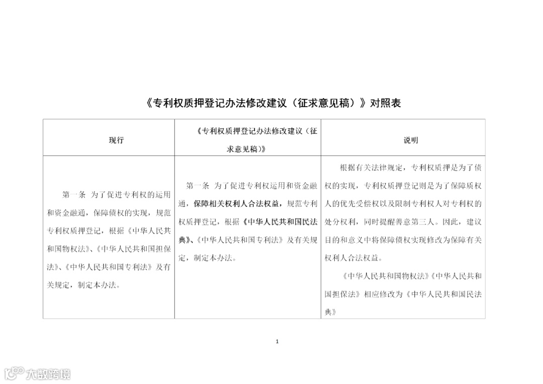 附件:附件1《专利权质押登记办法修改建议(征求意见稿)》修改对照表.docx