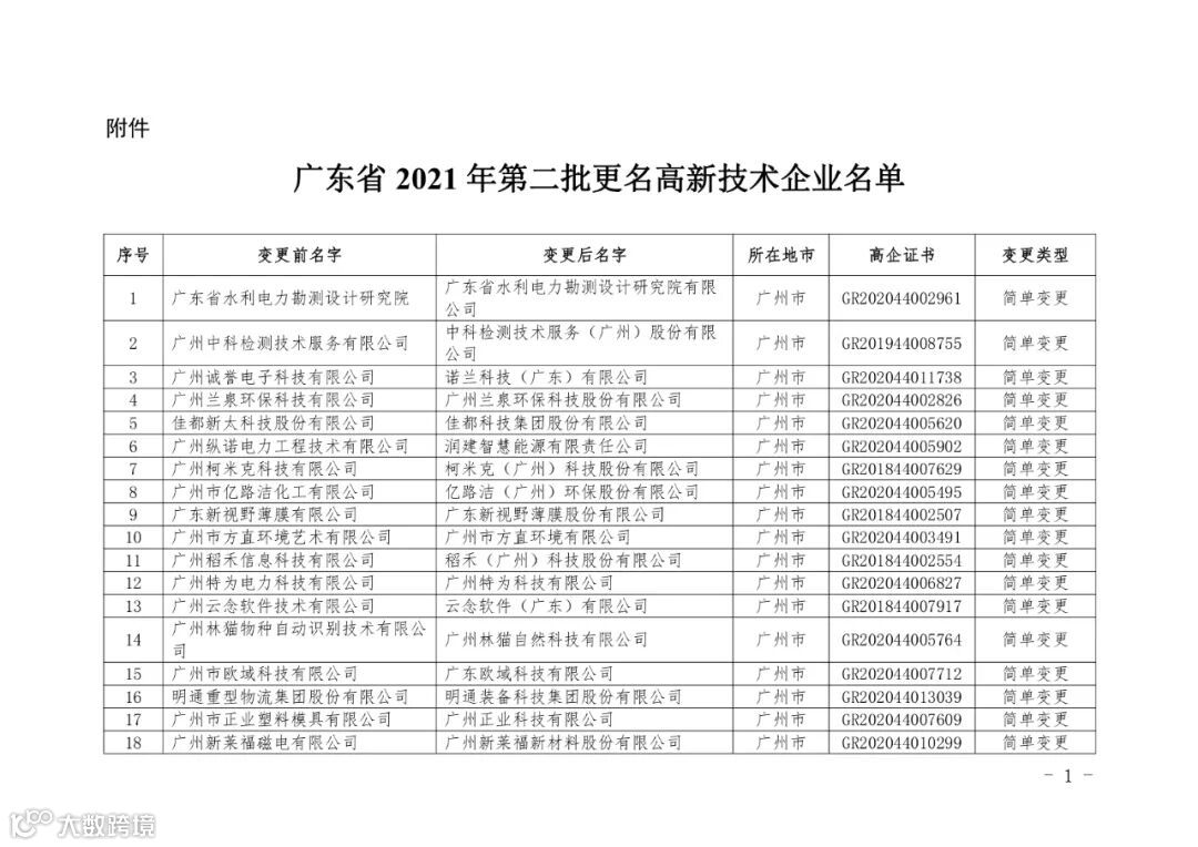 附 件:广东省2021年第二批更名高新技术企业名单