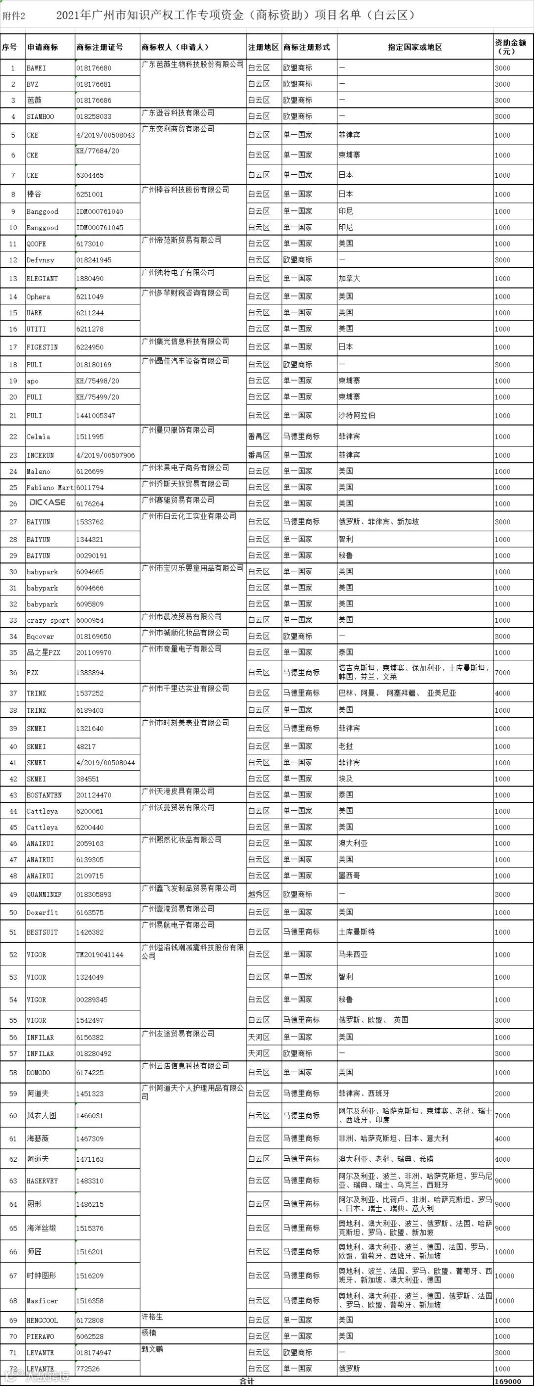 附件2.2021年广州市知识产权工作专项资金(商标资助)项目名单(白云区).xlsx