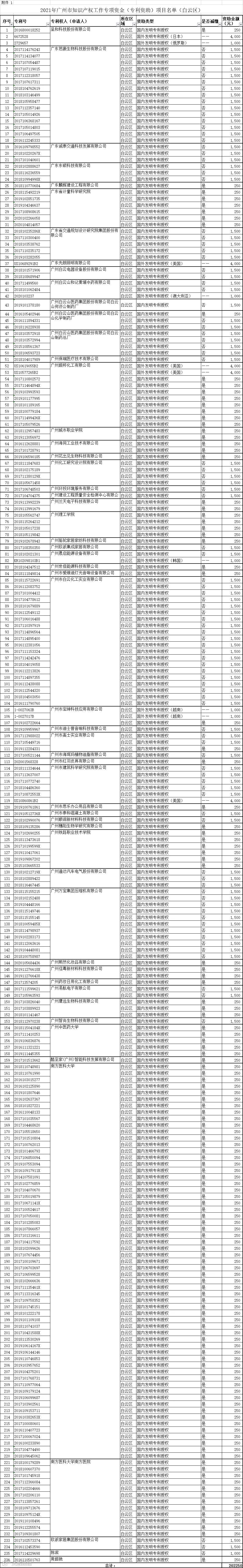 附件1.2021年广州市知识产权工作专项资金(专利资助)项目名单(白云区).xlsx
