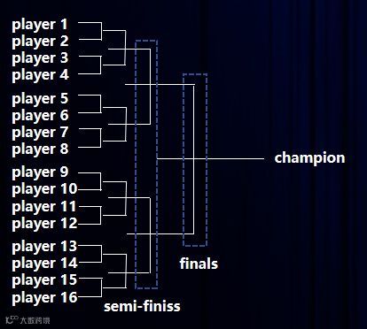 1.本次比赛中共有16支队伍,每支队伍1人,赛前由赛事主办方统一协调抽签决定对阵队伍
