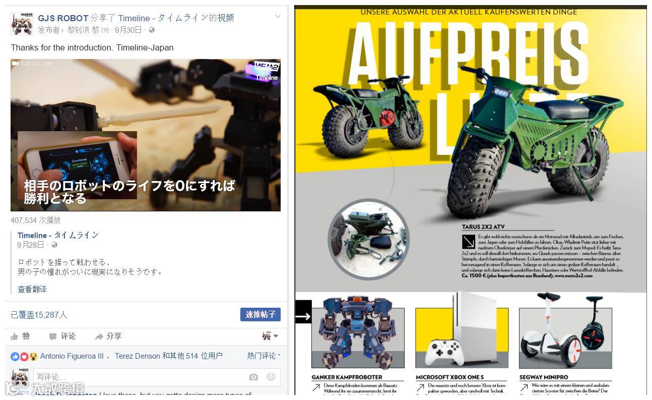 放眼全球,目前还没有一款专门为格斗而设的机器人产品,Ganker格斗机器人可为填补了这一空白。事实上,在7月底,Ganker也在美国最有影响力的产品众筹网站进行了众筹,被多家国外知名媒体誉为“格斗机器人的明日之星”,更取得近70万的佳绩,在facebook上更有4w+粉丝的热情支持。