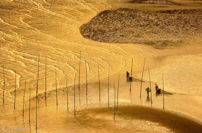 夕阳下的渔夫,金灿灿的霞浦。
