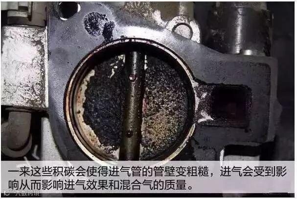 由于整台发动机各个活塞的工作并不是同步的,当熄灭发动机时,有些气缸的进气门并不能完全关闭,未燃烧的燃油不断蒸发氧化,会在进气管尤其是节气门后方产生一些较软的黑色物质。
