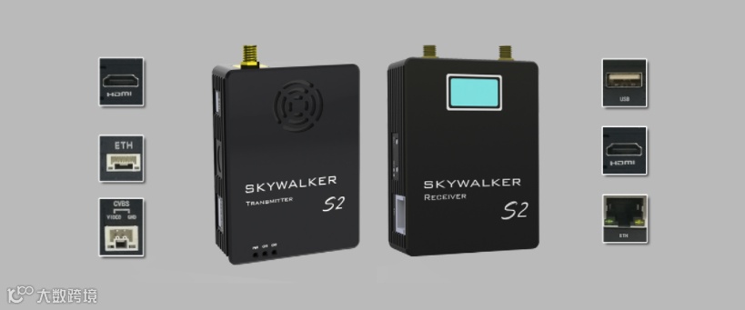 丰富接口: S2具有丰富的视明输入输出接口,发射端支持HDMI、网口、CVBS,满足用户多样化挂在需求,接收有HDMI网口,并支持HDMI和网络流同时输出,接收机还具有通用的USB接口,可描入USB设备,一键录制高清实时视频,多重备份, 不错过无人机每一个重要瞬间。
