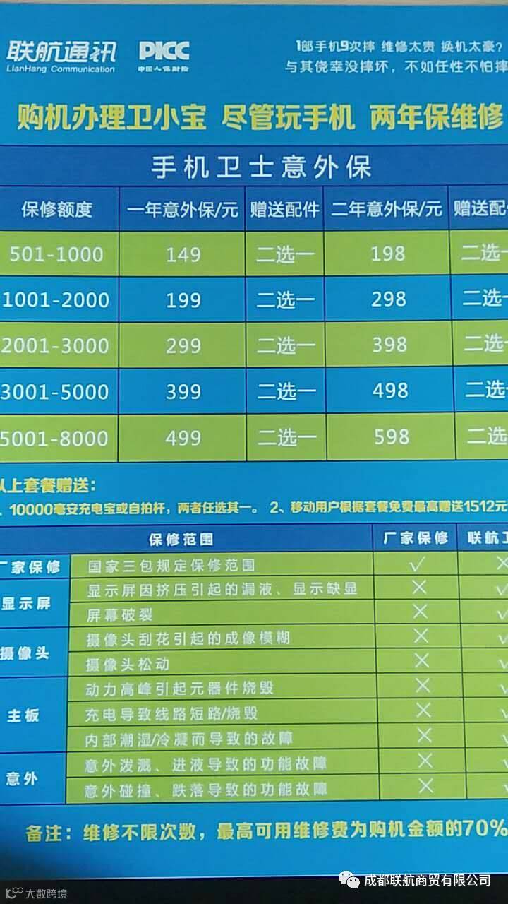 在联航购手机您放心使用,参与活动可享最高三年免费维修,摔坏、进水一样免费保修。