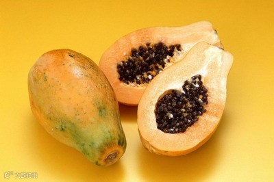 木瓜也分公母,肚子大的是母的,比较甜。一般挑鼓肚子的,表面斑点很多,颜色刚刚发黄摸起来不是很软的那种。如果表面上还有点胶质的东西,那没关系,是糖胶,这样的会比较甜.买木瓜如果要马上吃,就要挑黄皮的,但是不可以太软,这样的木瓜才甜而不烂。