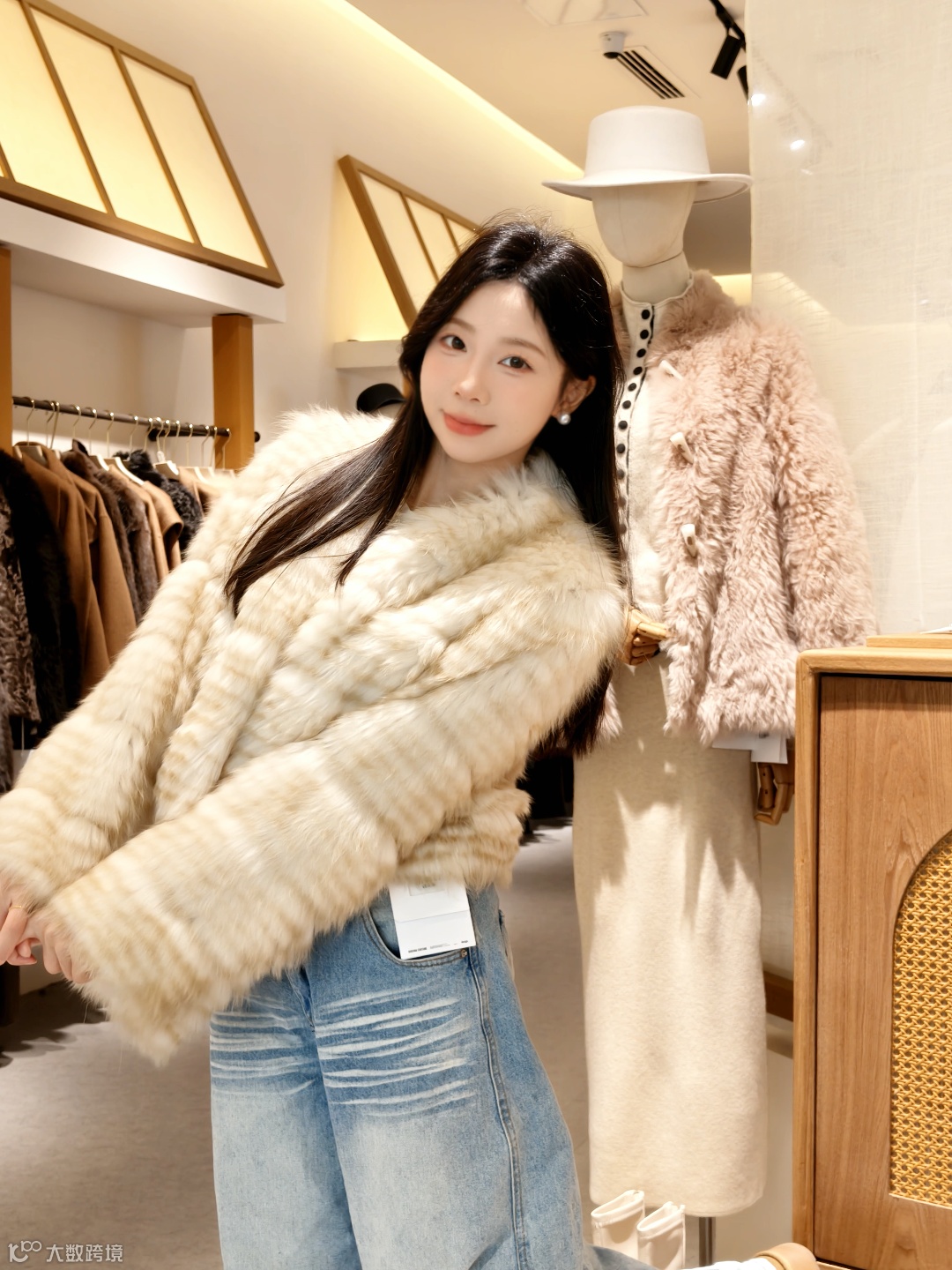 这件狐狸毛外套层次感满满,软乎乎的质感自带温柔滤镜,搭配阔腿牛仔裤甜酷又保暖,秋冬出街穿它回头率直接拉满。