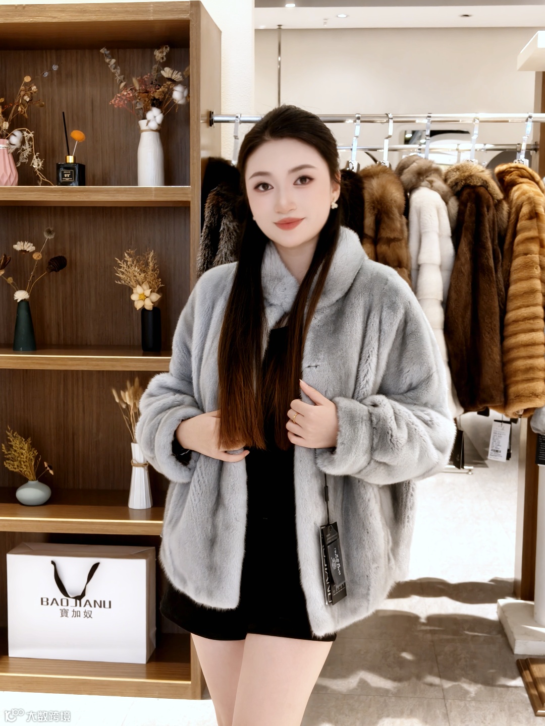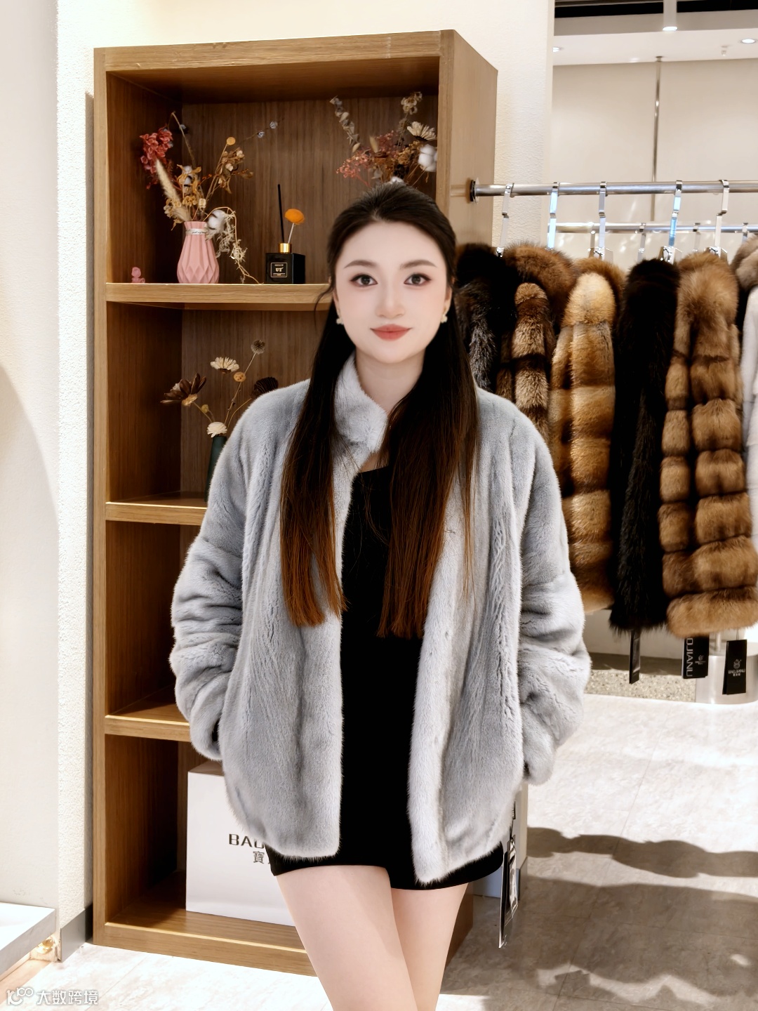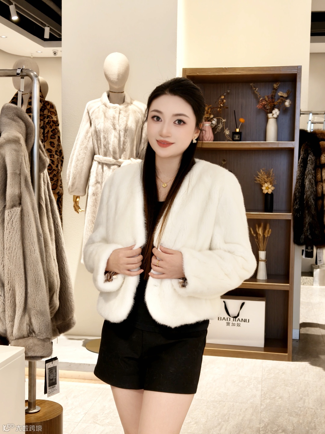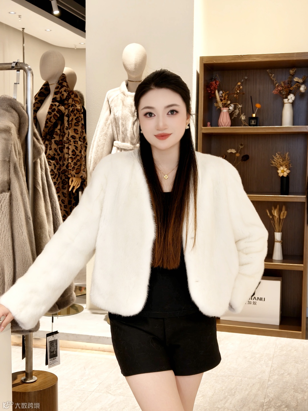 这件黑色貂毛短款外套,软乎乎的质感裹在身上暖得像被云朵抱住,搭配基础款黑裙轻松穿出高级氛围感。