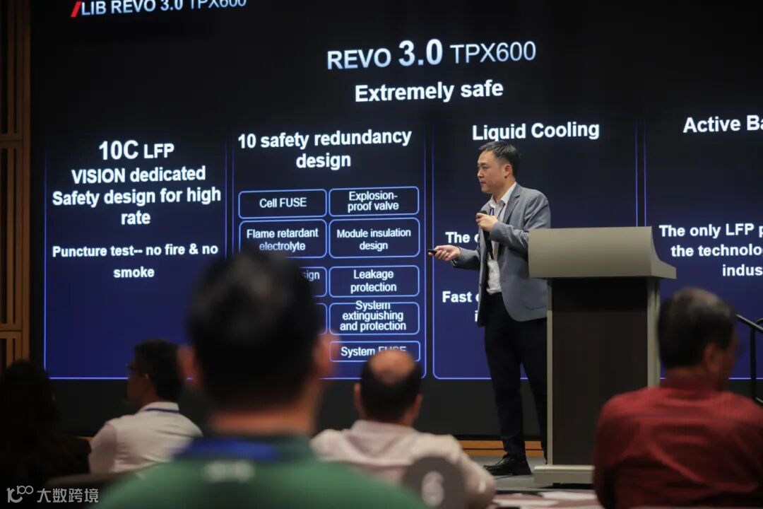 活动现场,雄韬股份展示的重磅技术成果REVO 3.0吸引了众多专业人士的关注。REVO 3.0是雄韬股份专为AI智算中心推出的UPS锂电电源解决方案,其单柜功率高达600kW,远超业内水平。产品采用基于叠片技术的高倍率磷酸铁锂电芯,创新应用主动均衡技术与液冷技术,从电芯级到系统级超10重安全冗余设计,能够全方位满足AI数据中心对电源的严苛需求,为设备稳定运行提供坚实保障。