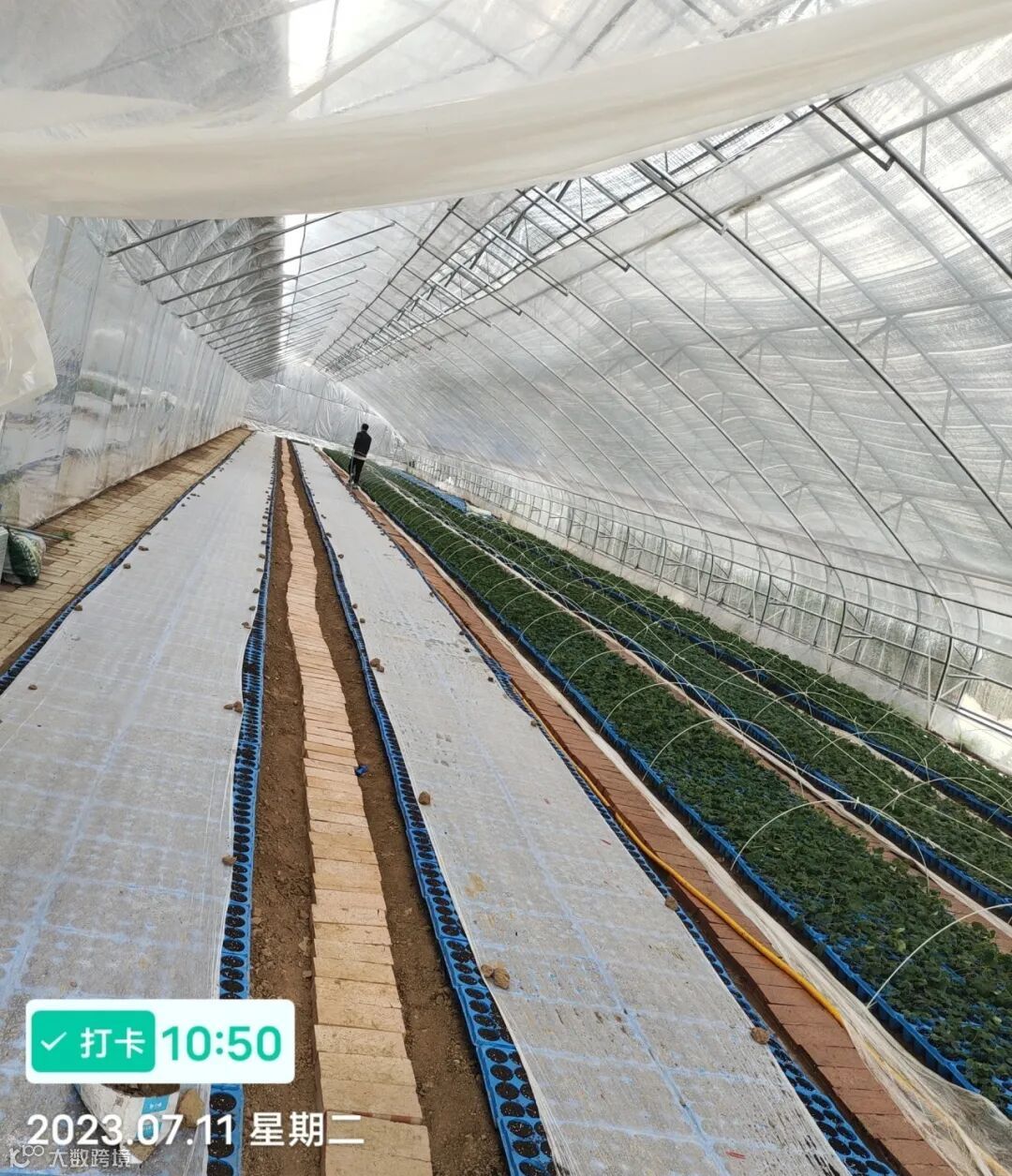 6、双膜大棚骨架无透光性好,抗风雪能力强,使用寿命长,一般可用15年以上。