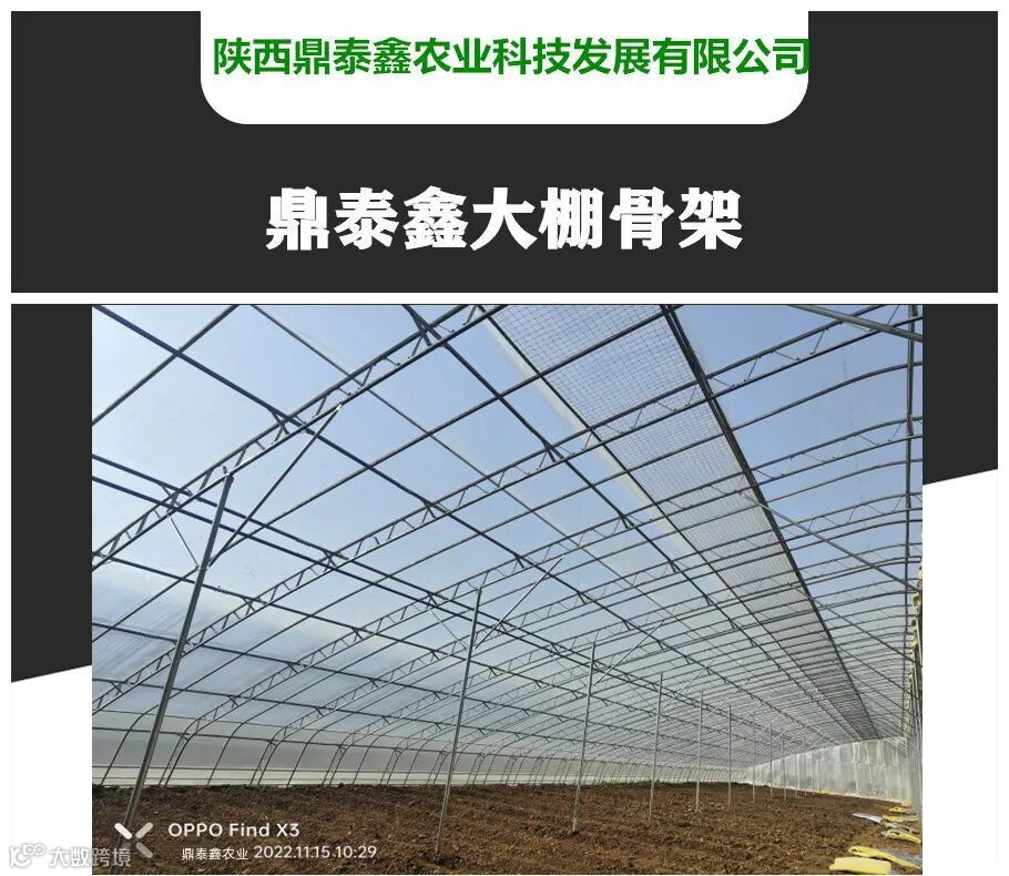 陕西鼎泰鑫农业科技发展有限公司专业生产、加工各种温室大棚骨架、大棚配件,货品齐全、质优价廉、库存充足,一站式购买齐全,不用您跑冤枉路。欢迎大家前来考察、洽谈业务。