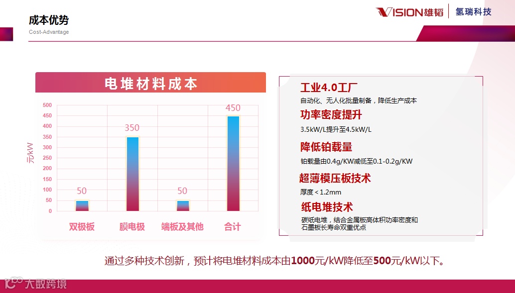 近年来,在雄韬氢瑞的精研与技术革新之下,核心部件国产化水平持续稳步提升,国产电堆的成本和价格下降很快。